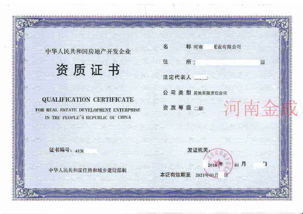 • 房地產(chǎn)二級資質(zhì)證書