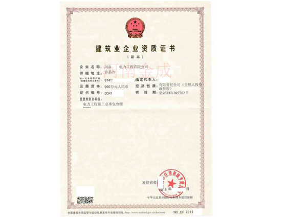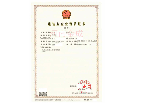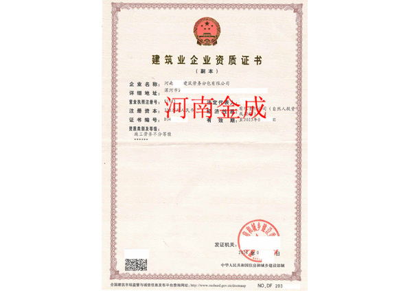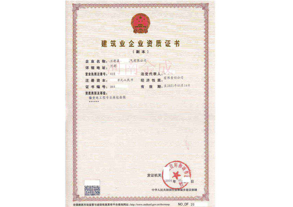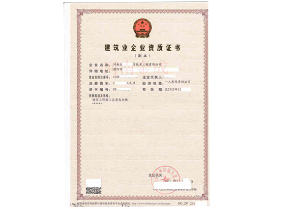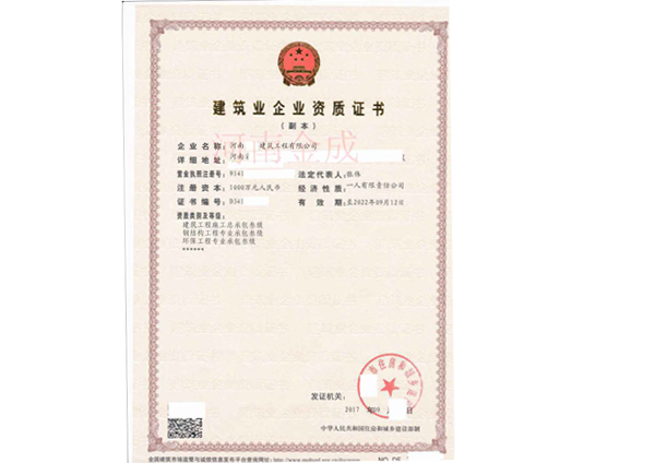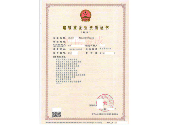 • 建筑業(yè)企業(yè)資質(zhì)證書副本