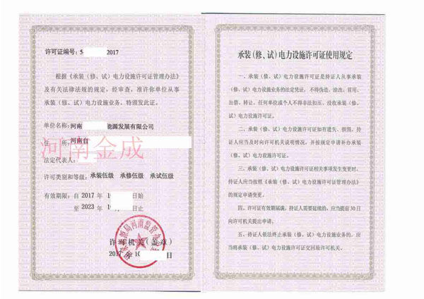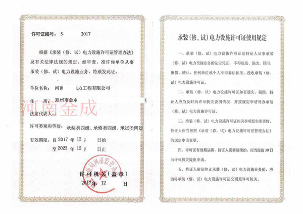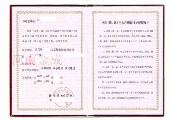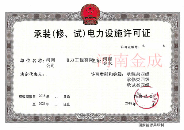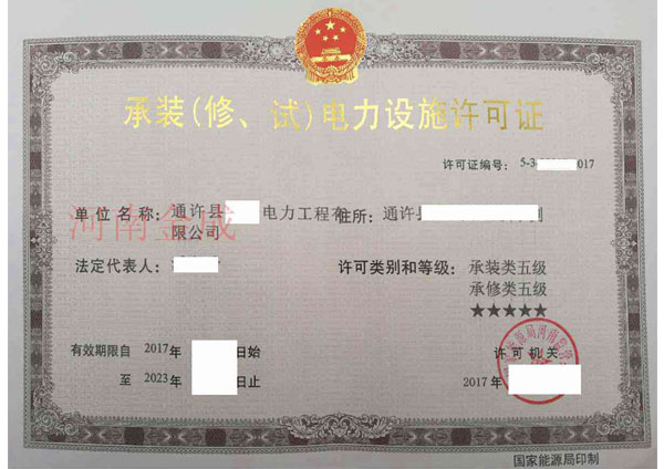 • 承裝(修、試)電力設(shè)施許可證