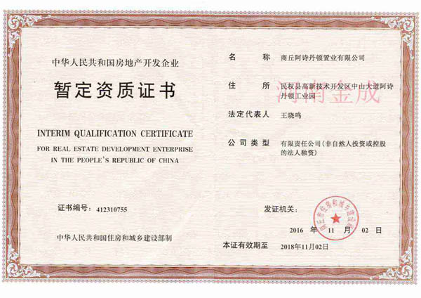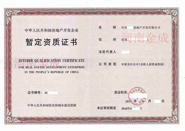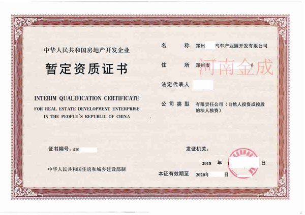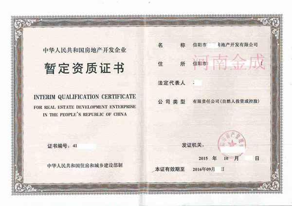 • 房地產(chǎn)暫定資質(zhì)證書